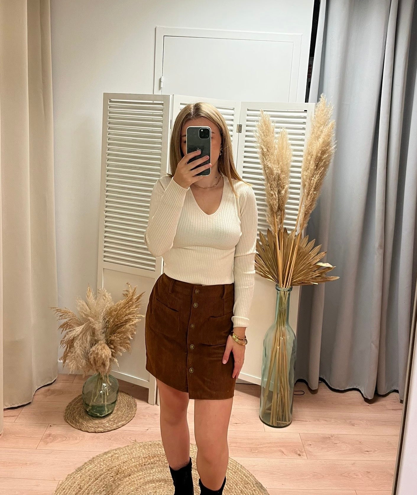 Pull chaussette en col V , en blanc /noir / beige , léger agréable a porter .