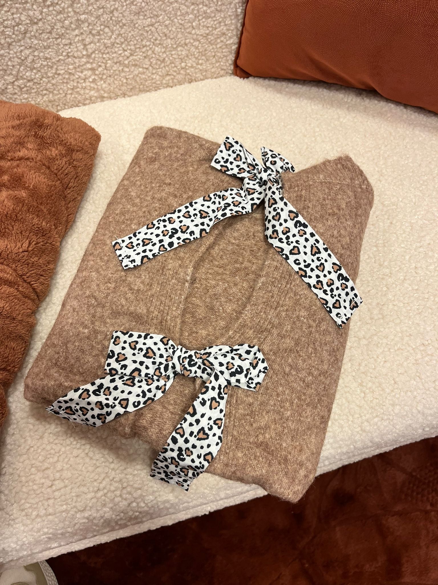 Magnifique pull , avec des nœuds léopards , un peu chiné .