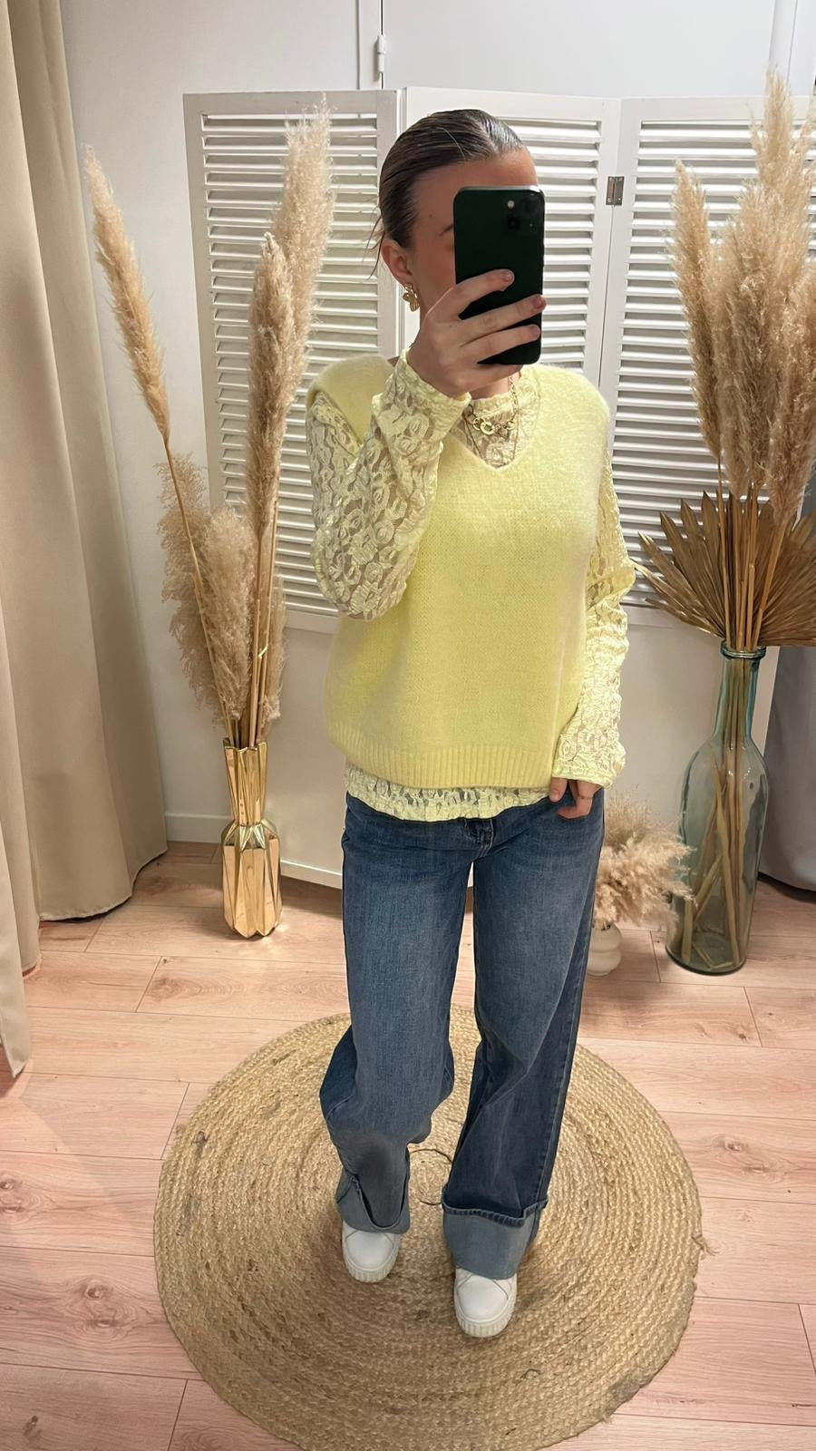 Top dentelle à longue manches divers coloris , idéale sous un pull ou gilet sans manches.